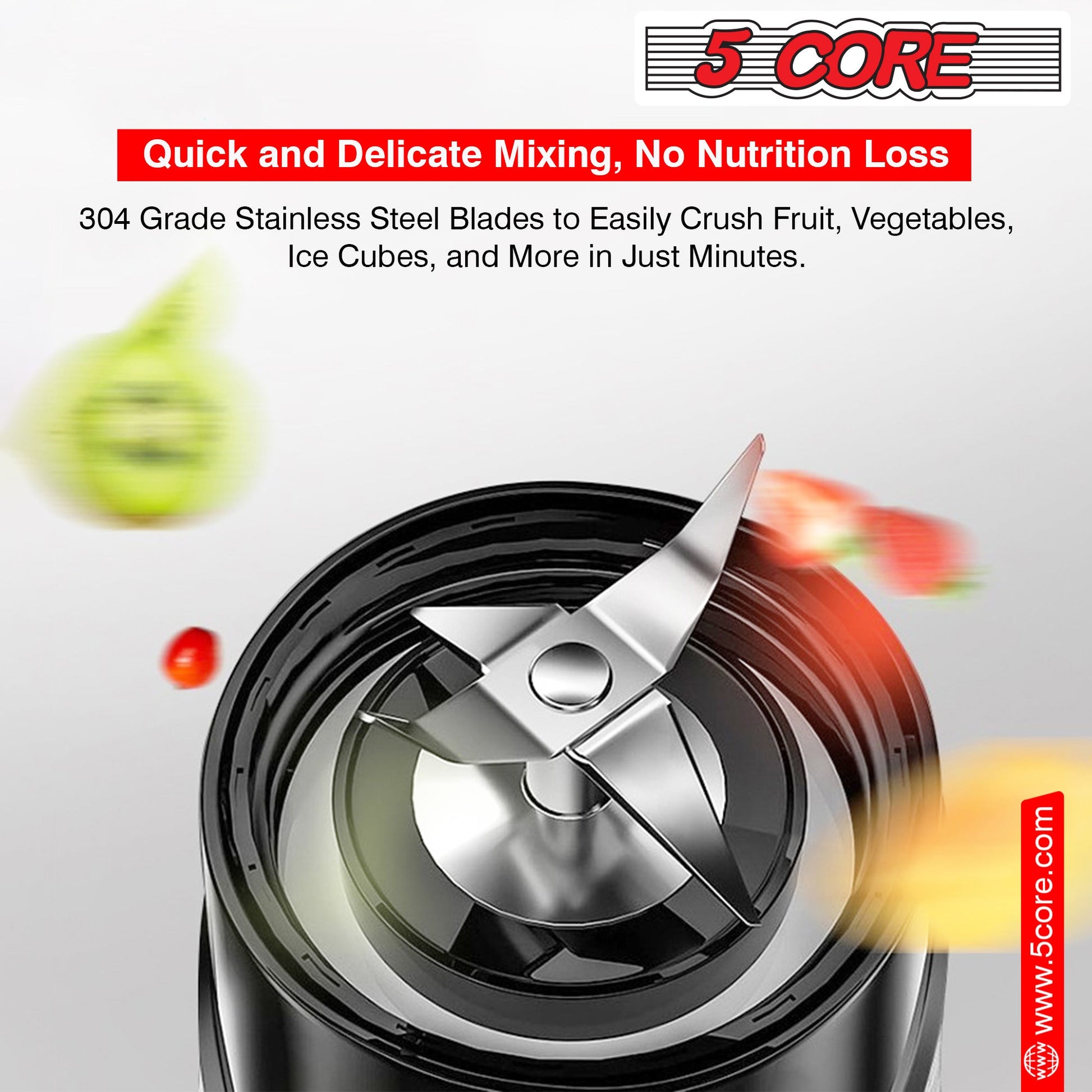 Heavy Duty Stainless Steel 4 Blades with rotation speed up to 20000rpm easily cut tough ingredients.